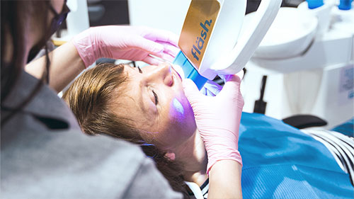 In unserer Praxis nutzen wir das hochmoderne Bleaching-Verfahren „fläsh“. Alle Bestandteile dieses effektiven und gleichzeitig schonenden Zahnaufhellungssystems sind „made in Germany“ – vom aufhellenden Gel bis zur verwendeten LED-Lampe.